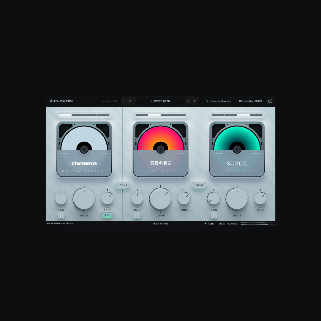 Clean design dirty sounds, fusion is the way to go to dip your mix into character and texture. Intuitive interface, 50+ professional grade presets made by the best producers for your tracks.